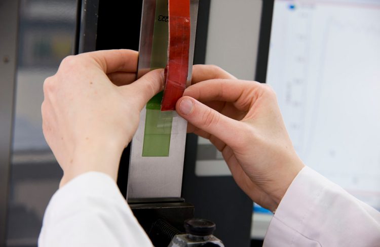 During production, our highly sophisticated testing laboratories continuously monitor and control the quality of our protective films. We guarantee our customers quality assurance, reproducible at any time, as our testing requirements and procedures go far beyond the standards defined for industrial adhesive tapes. Our quality experts have adapted test methods on a much higher level, specifically adapted to the characteristics of protective films. It is typical to consider a dwell time when monitoring the development of adhesive strength over the course of 24 hours, or more. Such testing procedures have been optimised and refined to ensure reliable results and maximum quality assurance.