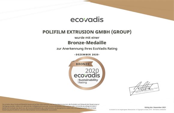 Looking ahead to the next assessment, the company is at this stage already optimistic. “Our goal is to show improvements also in 2021,” says Dr. Bert Wölfli, Head of Operations & Development POLIFILM EXTRUSION GmbH, who is in charge of the EcoVadis assessments project internally. “Many assessment criteria are already met in our day-to-day business, but are simply not sufficiently documented.” This will change with the publication of the first POLIFILM CSR Report, expected to be published in Q1 2021. “But of course we don’t just intend to make up more points through bureaucracy. There are also many exciting projects in the core areas ahead in 2021, which will support us in continuing to improve,” concludes Wölfli.